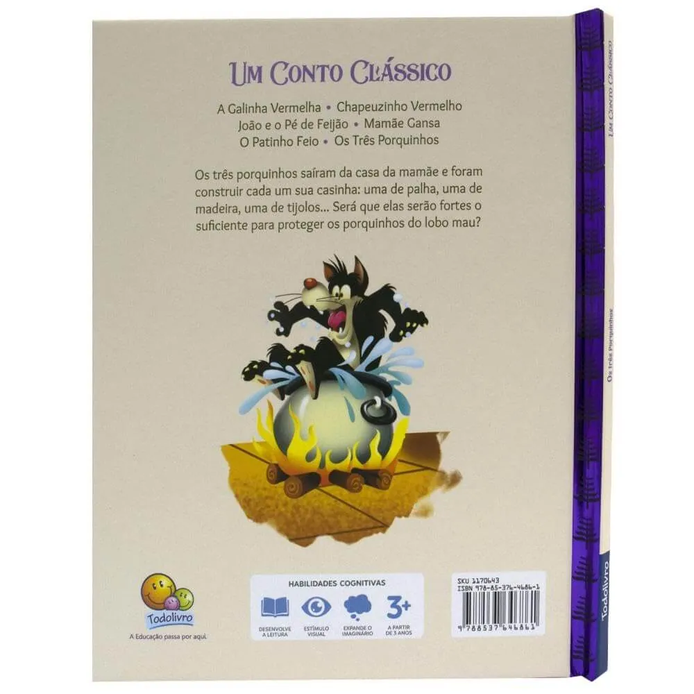 Os três porquinhos saíram da casa da mamãe e foram construir cada um sua casinha: uma de palha, uma de madeira, uma de tijolos… Será que elas serão fortes o suficiente para proteger os porquinhos do lobo mau?