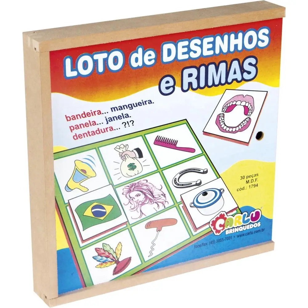 Loto De Desenhos E Rimas Em Mdf C/ 30 Pçs. – Carlu Brinquedos