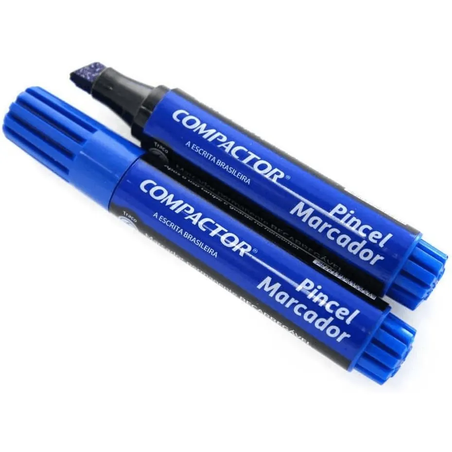 O Marcador Permanente Recarregável Compactor garante alta resistência e boa performance em diversas superfícies. Possui traço grosso variante de 4mm e 8mm e tinta de fácil recarga, ideal para ser usado em papéis, metais, plásticos, vidros, borrachas, cerâmicas e o utras superfícies.