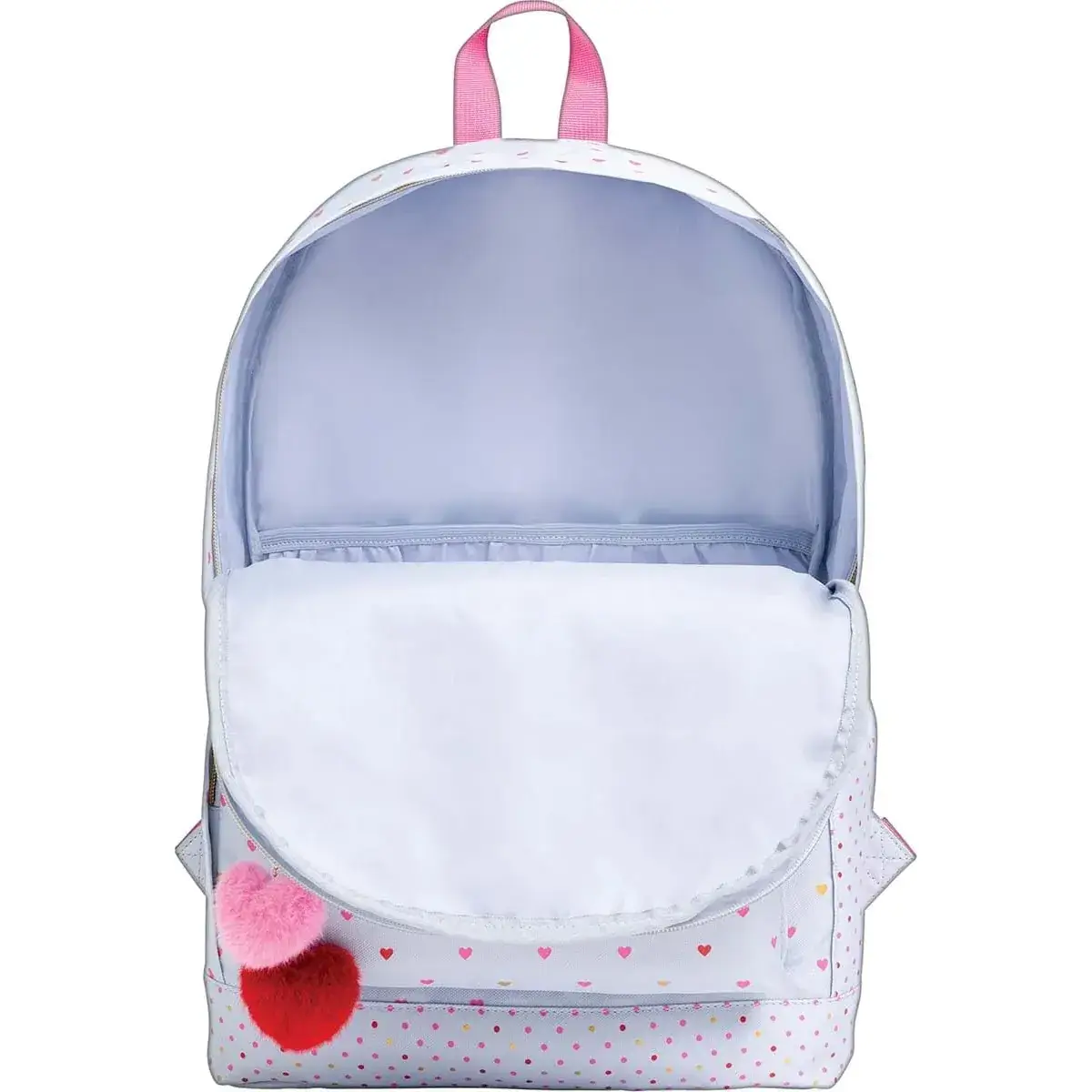 A Mochila de Costas Académie Coração Metalizado Azul é confeccionada em material resistente, com base reforçada, parte interna forrada e alças acolchoadas e ajustáveis para garantir conforto a quem utilizá-la. Possui dois compartimentos, sendo um bolso externo e uma abertura principal, com divisória interna, além de um bolso lateral, para armazenamento de materiais do dia a dia.