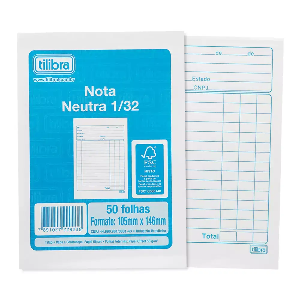 NOTA NEUTRA 1/ 32 105 MM X 146 MM C/ 50 FLS. UN. - TILIBRA quantidade