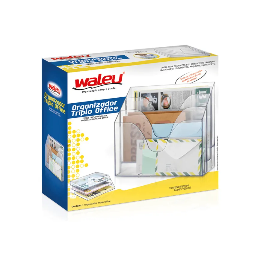 A Waleu apresenta o Organizador Triplo Office, uma solução prática e sofisticada para quem deseja maximizar a organização e otimizar o espaço com elegância. Este organizador multifuncional foi projetado para acomodar documentos, pastas e até mesmo servir como suporte para monitor, oferecendo versatilidade e praticidade em um único produto.