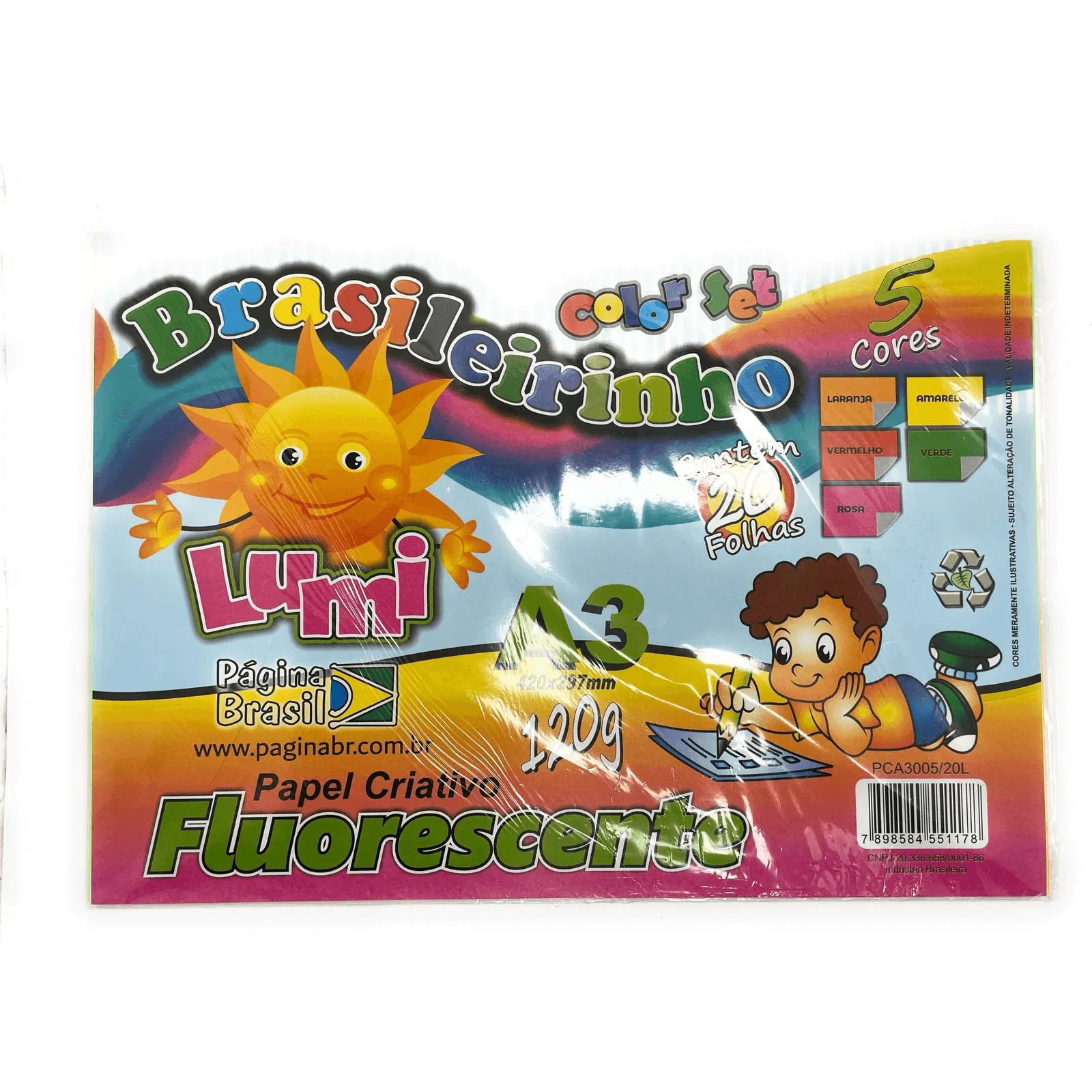 – Cor: Colorido Neon. – Com 5 cores. – Tamanho: A3 ( 297 x 420 mm ). – Gramatura: 120 g.