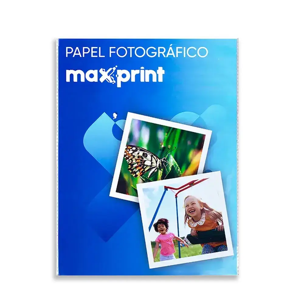 Papel Fotográfico Glossy Adesivo A4 180g com 50 fls proporciona alta definição e resistência à água com secagem instantânea, sendo ideal para impressões fotográficas.