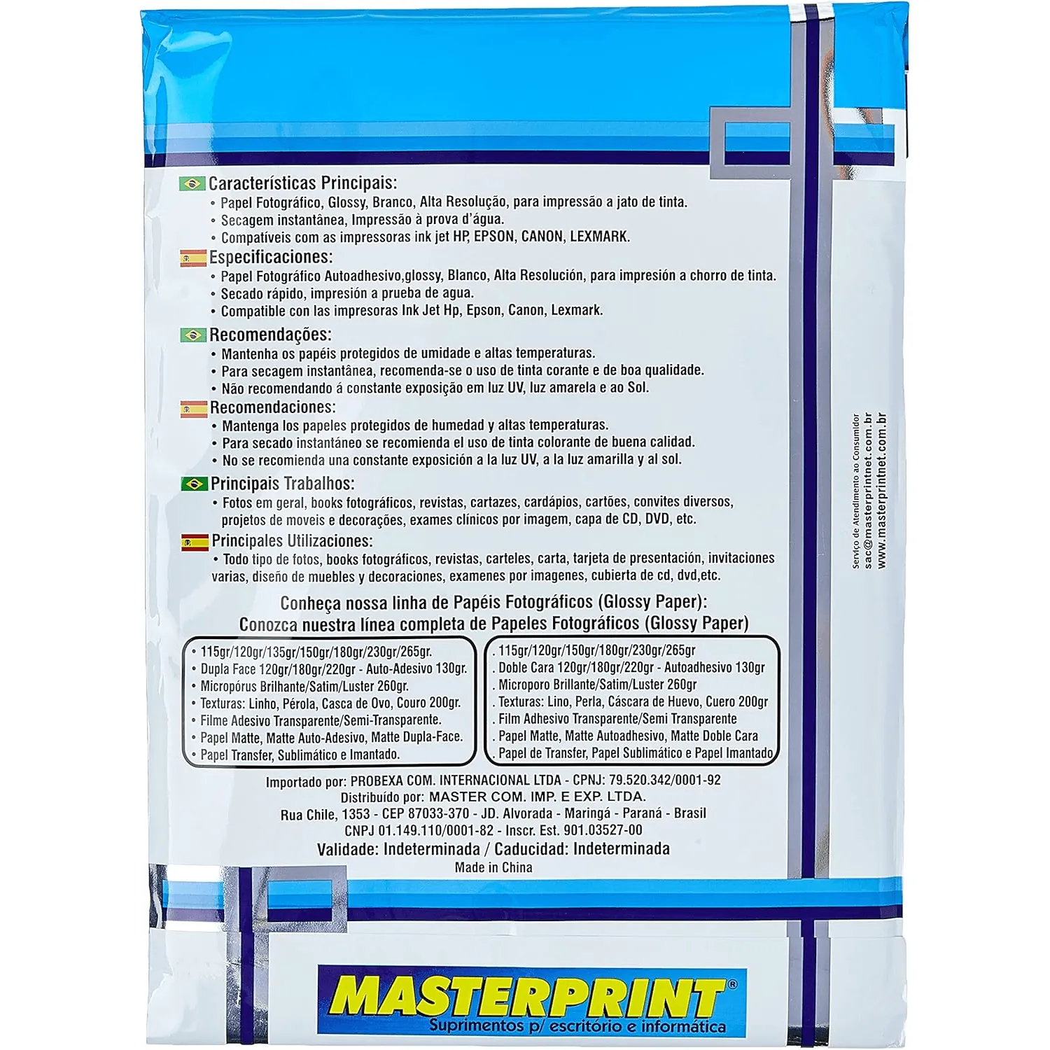 Papel Fotográfico Inkjet A4 Glossy Dupla Face 180 G C/ 20 Fls. – Masterprint