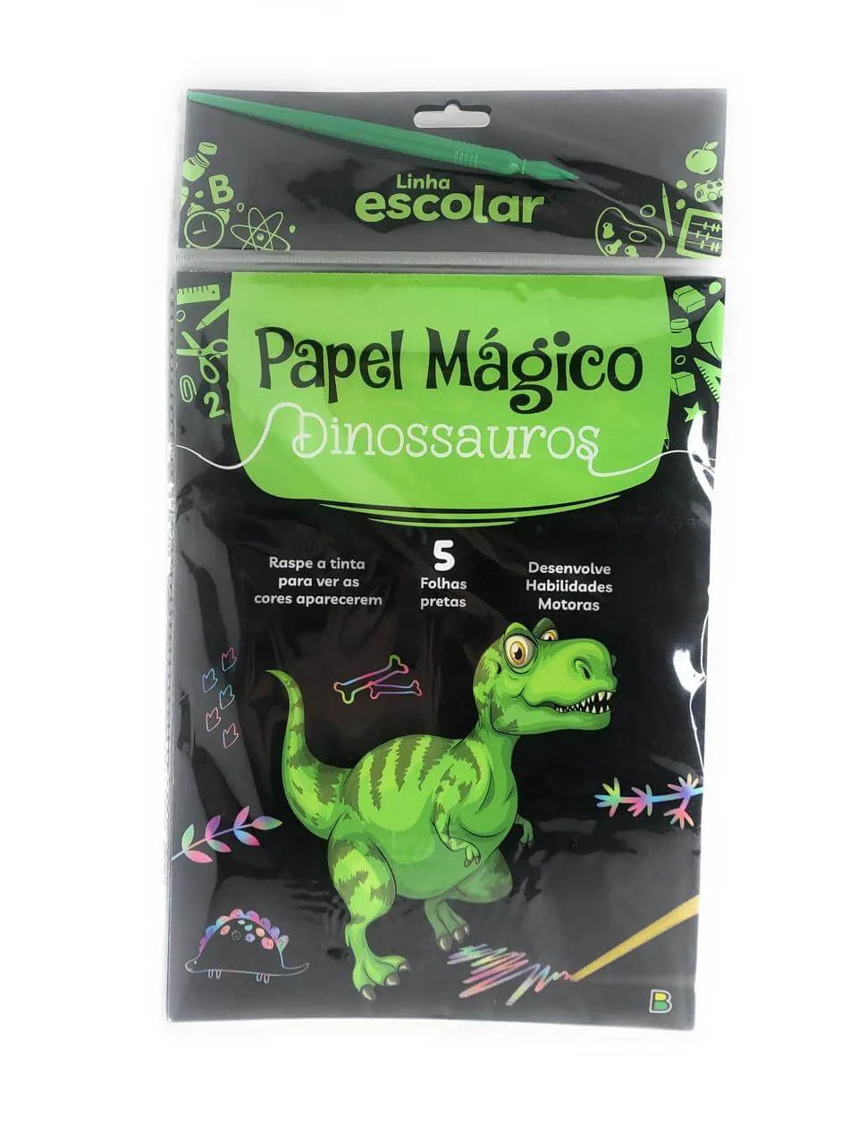 Papel Mágico Dinossauros C/ 5 Fls. C/ Raspador – Brasileitura
