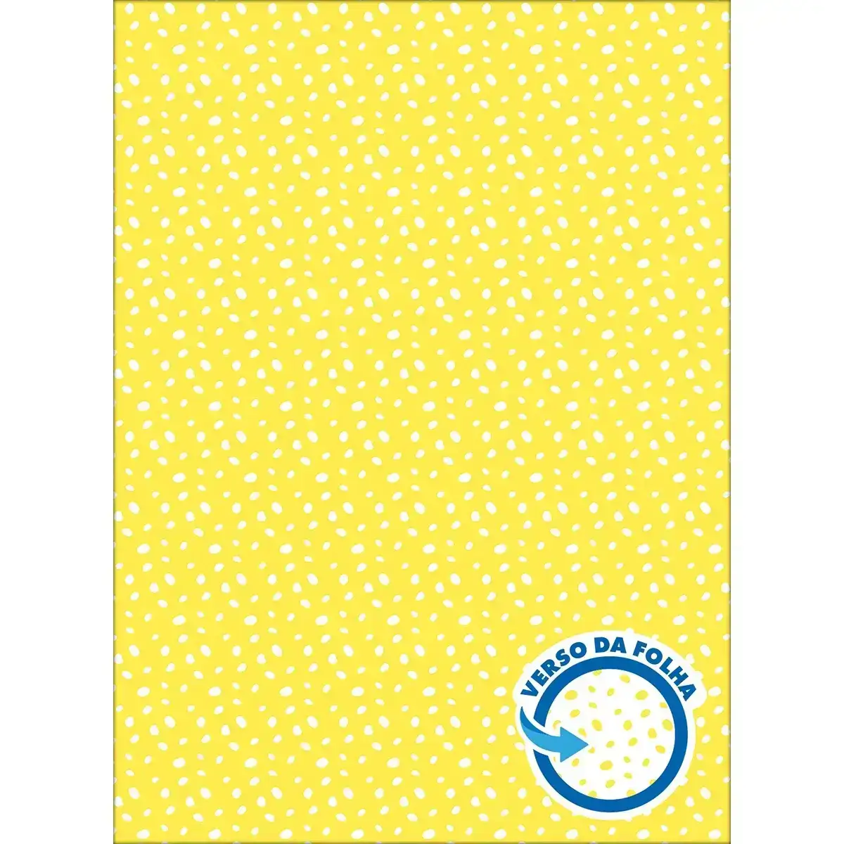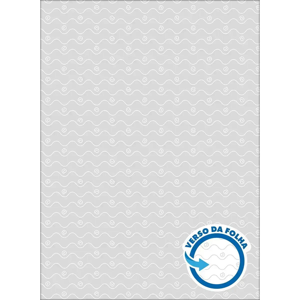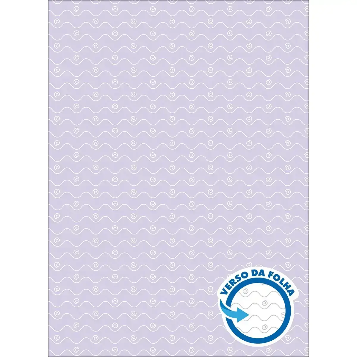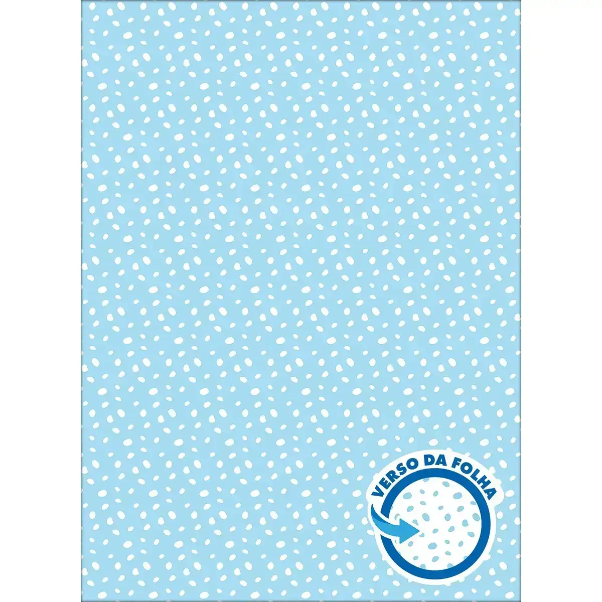 São 3 estampas em 7 cores diferentes, com impressão frente e verso, em 36 folhas resistentes de gramatura 180 g/m², no tamanho 230 x 320 mm.