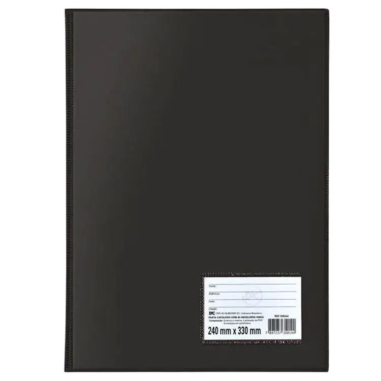 Pasta Catálogo Com 50 envelopes 0,06, 4 colchetes de metal e visor. Marca: ACP Tamanho: 245 mm x 335 mm x 20 mm Composição: PVC, PE e Metal.