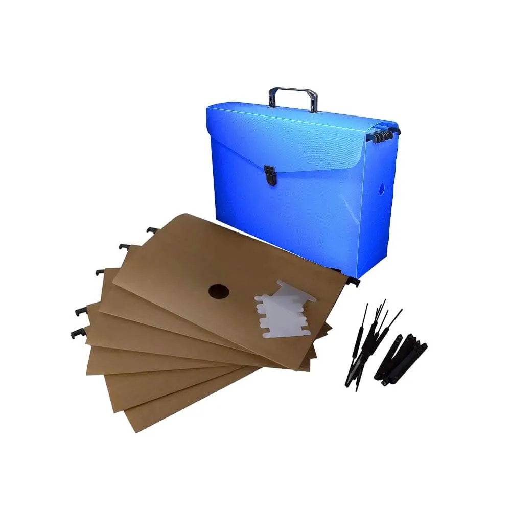 Apresentamos a Maleta Pasta Arquivo Plástica Azul, um produto ideal para organizar seus documentos de forma prática e eficiente. Com a referência, esta maleta acompanha 6 pastas suspensas em papel Kraft, proporcionando uma solução completa para o armazenamento de papéis. Seu tamanho compacto de 260 mm x 395 mm x 120 mm a torna perfeita para ser transportada em bolsas ou mochilas. Fabricada em plástico de alta qualidade, a maleta é resistente e durável, garantindo a proteção dos seus documentos.