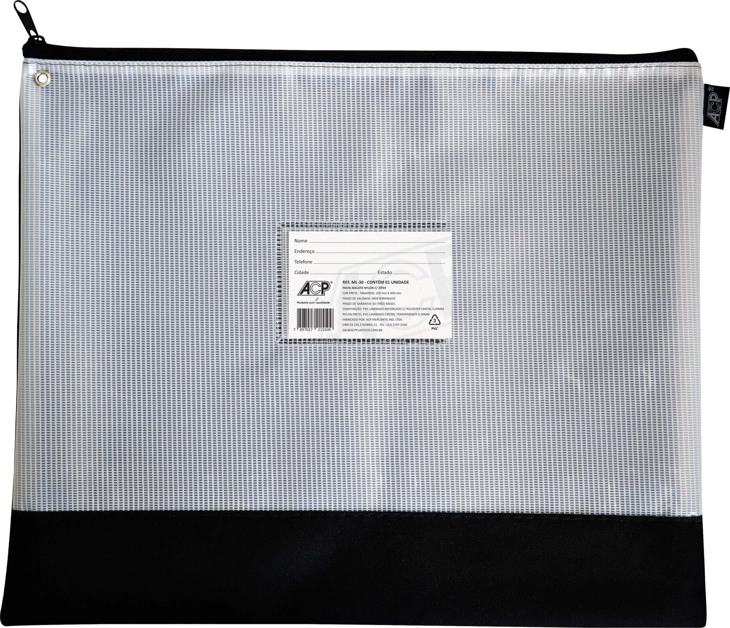 Pasta Malote Nylon c/ zíper – Tamanho: 320 mm x 400 mm – Pasta para malote de nylon com zíper ACP