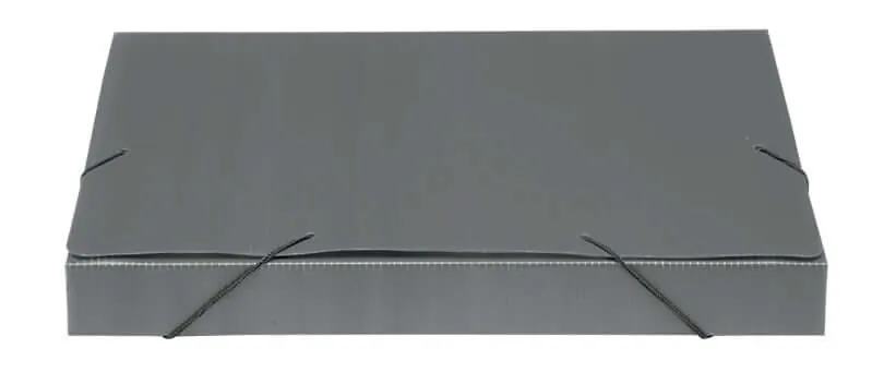 Pasta Oficio Alaplast, confeccionada em plástico corrugado, com estrutura alveolar, cortada em molde provido de vincos que possibilitam dobras, de modo a formar uma caixa de formato prismático retangular. A dobra correspondente à tampa fecha apenas uma largura e comprimento da caixa, possuindo aba para deslizar e fechar com elástico. Material produzido com 100 % de polipropileno. Dimensões: 35mm X 245mm X 340mm.