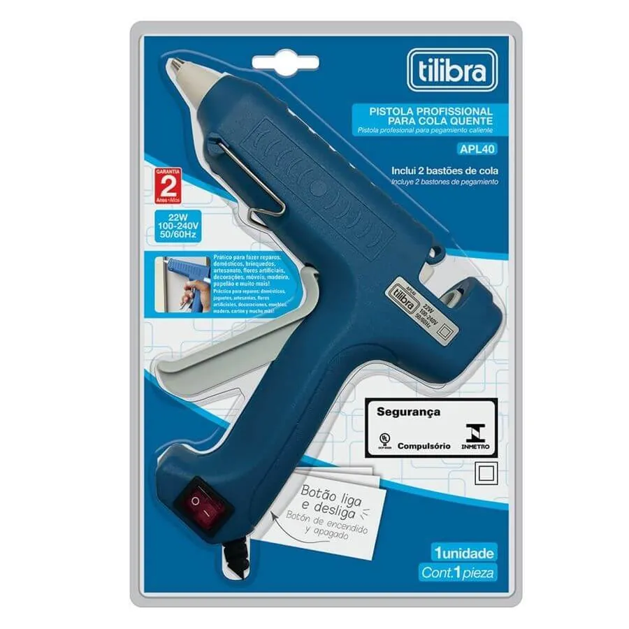 Pistola De Cola Quente Profissional 22W ,100-204V ,50/60Hz ,Grande Tilibra , C/2 Bastões De Cola Quente .