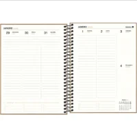 – Com capa dura e folhas com visões anual, mensal e semanal.