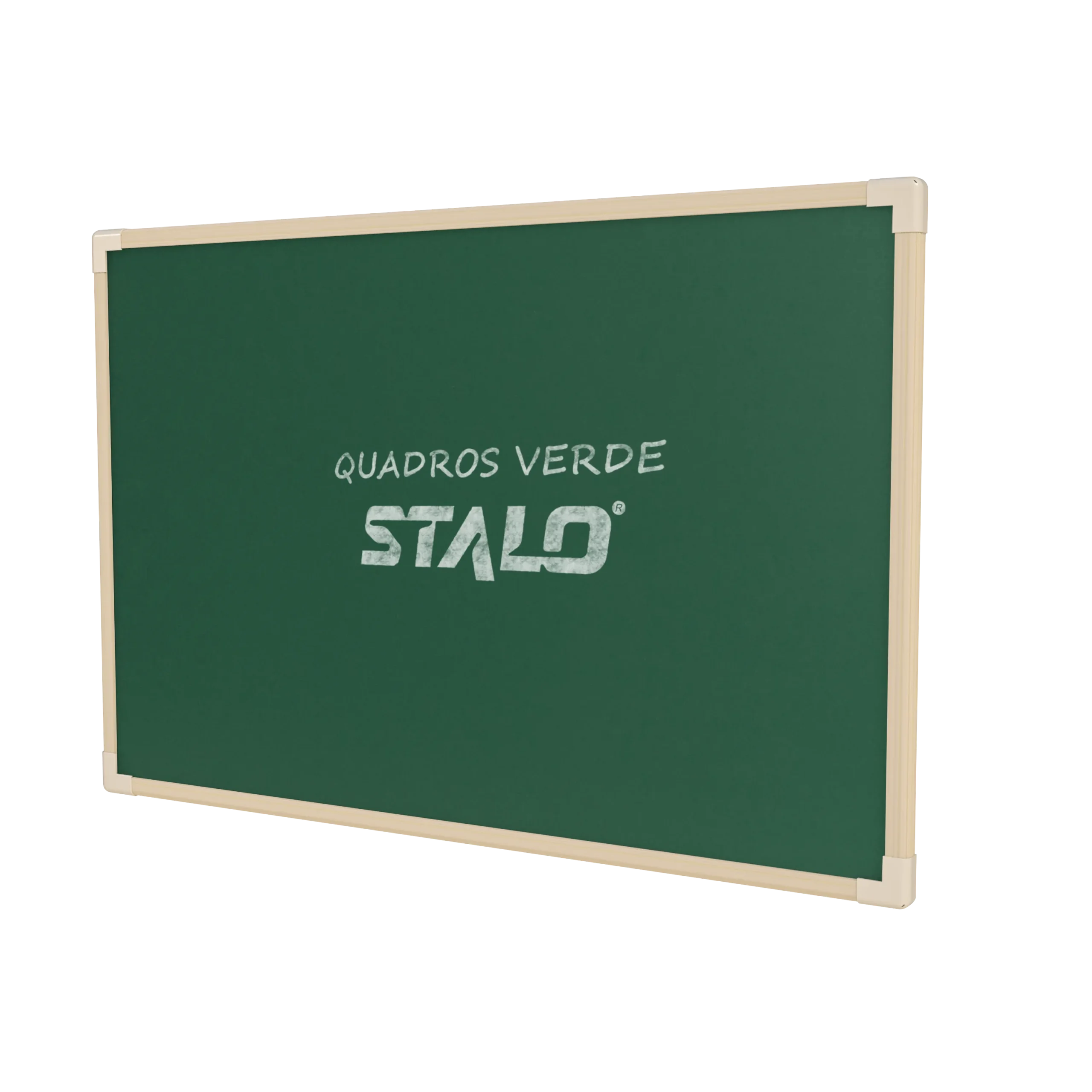Quadro verde com moldura em madeira pinus de reflorestamento e cantos plásticos, tampo em chapa de fibra de madeira e cor verde fosco 100% UV para uso de giz. Largura x Altura 90 cm x 60 cm
