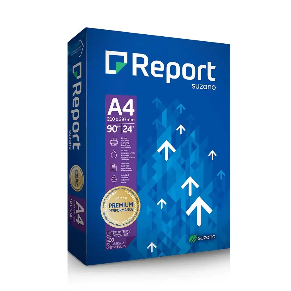 – Marca: Report Suzano. – Formato: A4 ( 210 x 297 mm ). – Gramatura: 90 g. – Com 500 folhas.