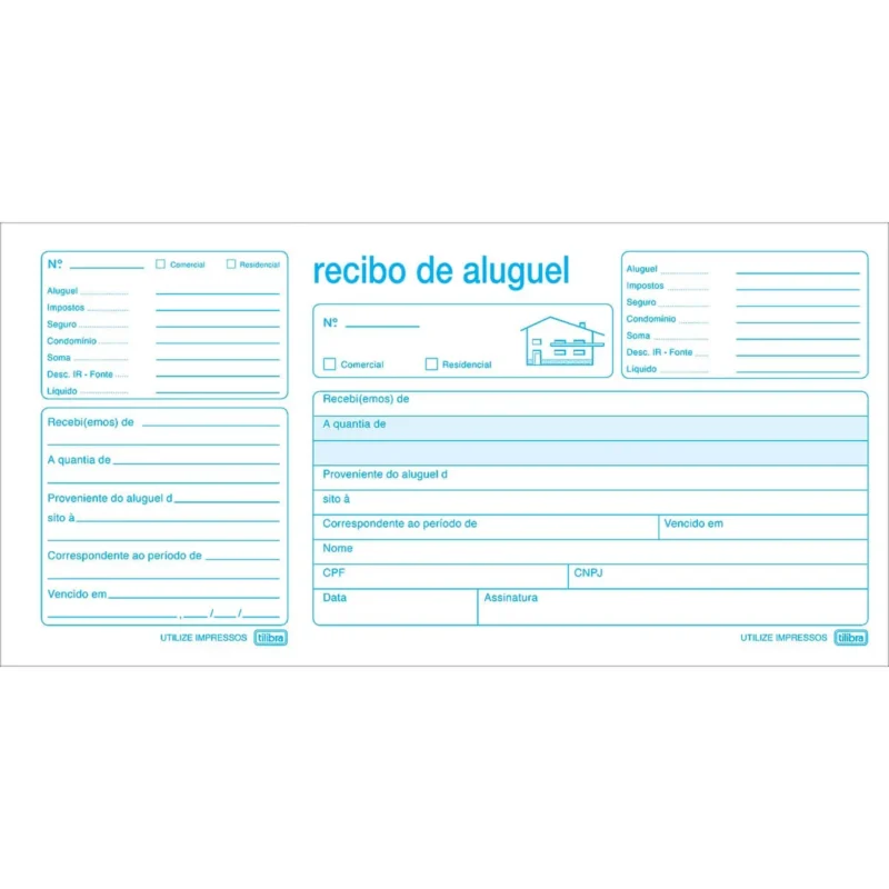 RECIBO DE ALUGUEL C/ CANHOTO 206 MM X 105 MM C/ 50 FLS. UN. - TILIBRA quantidade