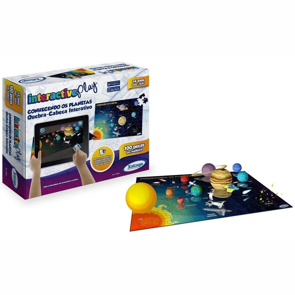 Aprender e se divertir ao mesmo nunca foi tão divertido com o Quebra-cabeça Interactive Play Conhecendo Os Planetas! A Xalingo Brinquedos traz para o mercado em primeira mão, a linha de jogos Interactive Play, unindo em um mesmo produto a brincadeira física e a realidade aumentada, proporcionando para a criança uma experiência ampliada de aprendizado. Depois de montar o quebra-cabeça de 100 peças em madeira, a criança poderá captar as imagens através do App e aprender sobre planetas, com muita diversão! O jogo desenvolve a atenção, a discriminação visual, o pensamento lógico e a relação parte e todo. Ideal para crianças a partir dos 4 anos. Garanta já e dê um presente divertido e educativo para os pequenos!
