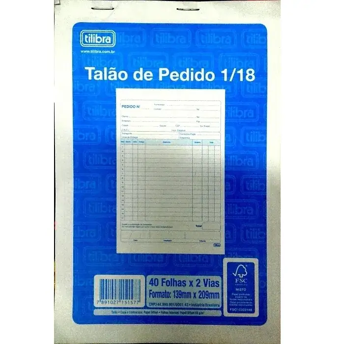 O Talão de Pedido 1/18 Médio 40×2 Vias – 80 Folhas é ideal para auxiliar a organização em comércios, empresas e escritórios. Além das folhas dedicadas para o registro dos pedidos, o produto possui folhas de 2ª via, em branco, que são indicadas para obter cópias dos pedidos com auxílio de papel carbono (vendido separadamente), mas o usuário pode utilizar como preferir.