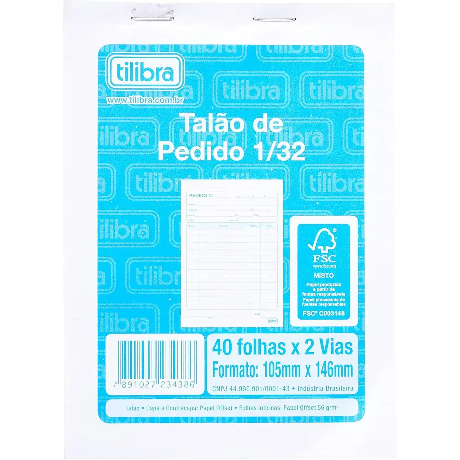 TALÃO DE PEDIDO 1/ 32 PEQ. 105 MM X 146 MM C/ 40 FLS. X 2 VIAS UN. – TILIBRA