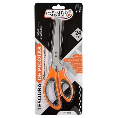 A Tesoura de Picotar 24 cm da BRW é produzida com materiais de qualidade que garantem a segurança e resistência necessária para realizações de projetos escolares, artesanatos e para personalização de cartões, convites e scrapbooks!