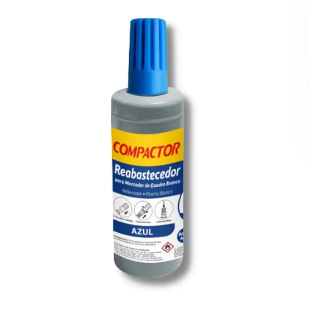 Tinta para Marcador Quadro Branco Compactor Azul 30ml Pingue algumas gotas da tinta, e ele já esta pronto para o uso. ESPECIFICAÇÕES • Marca: Compactor • Modelo: Quadro Branco • Embalagem: 30ml • Rende 15 Recargas de 100 Gotas.
