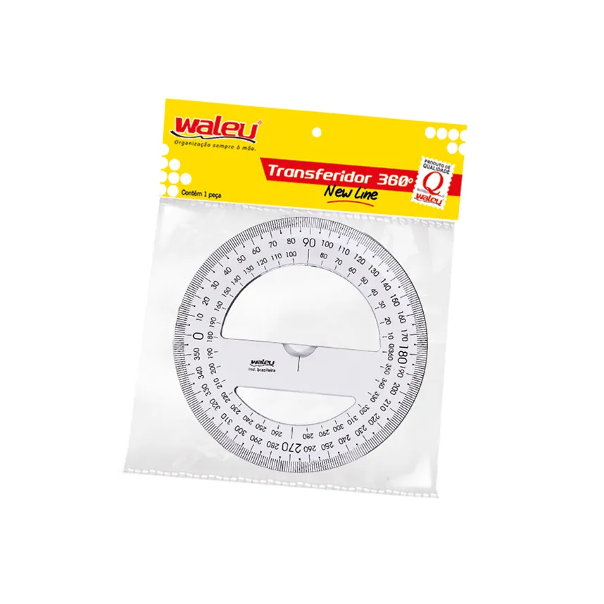 Um transferidor new line é uma régua especial que serve para medir os ângulos ao longo de uma circunferência. Sendo fabricada em poliestireno, o transferidor new line 360° possui 03mm de espessura, trazendo resistência e durabilidade. Embalagem individual.