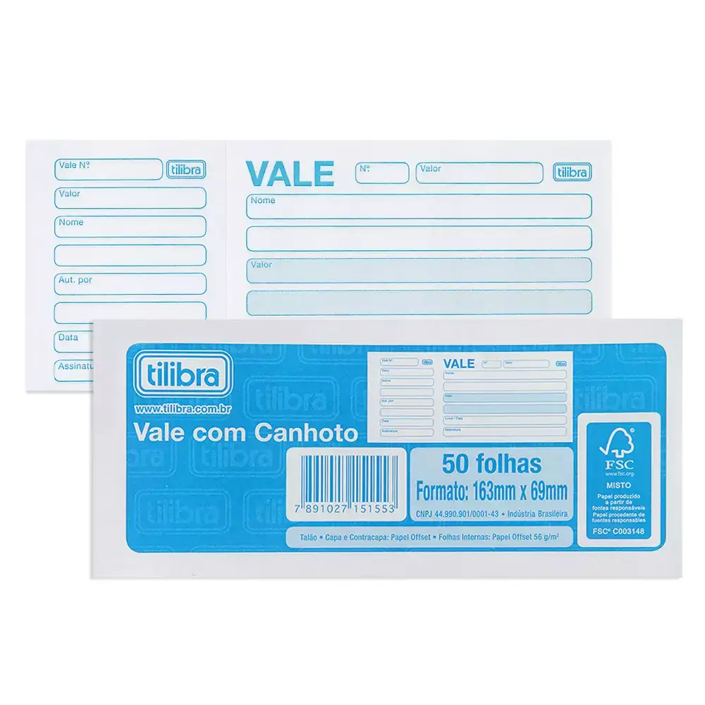 VALE C/ CANHOTO 163 MM X 69 MM C/ 50 FLS. - TILIBRA quantidade